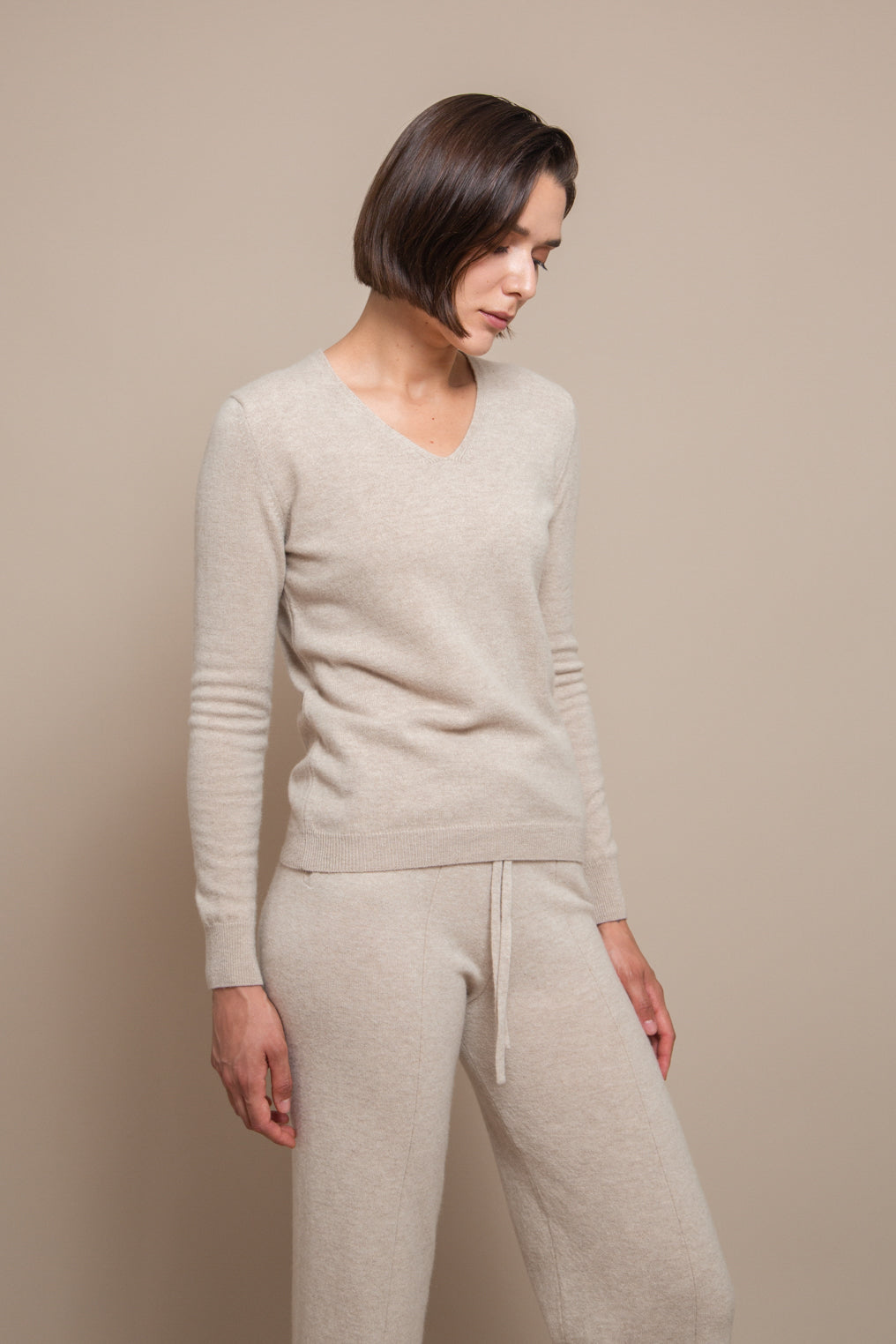 Everyday fit v-neck jumper crafted from a warm and lightweight knit of cashmere, superfine wool and silk