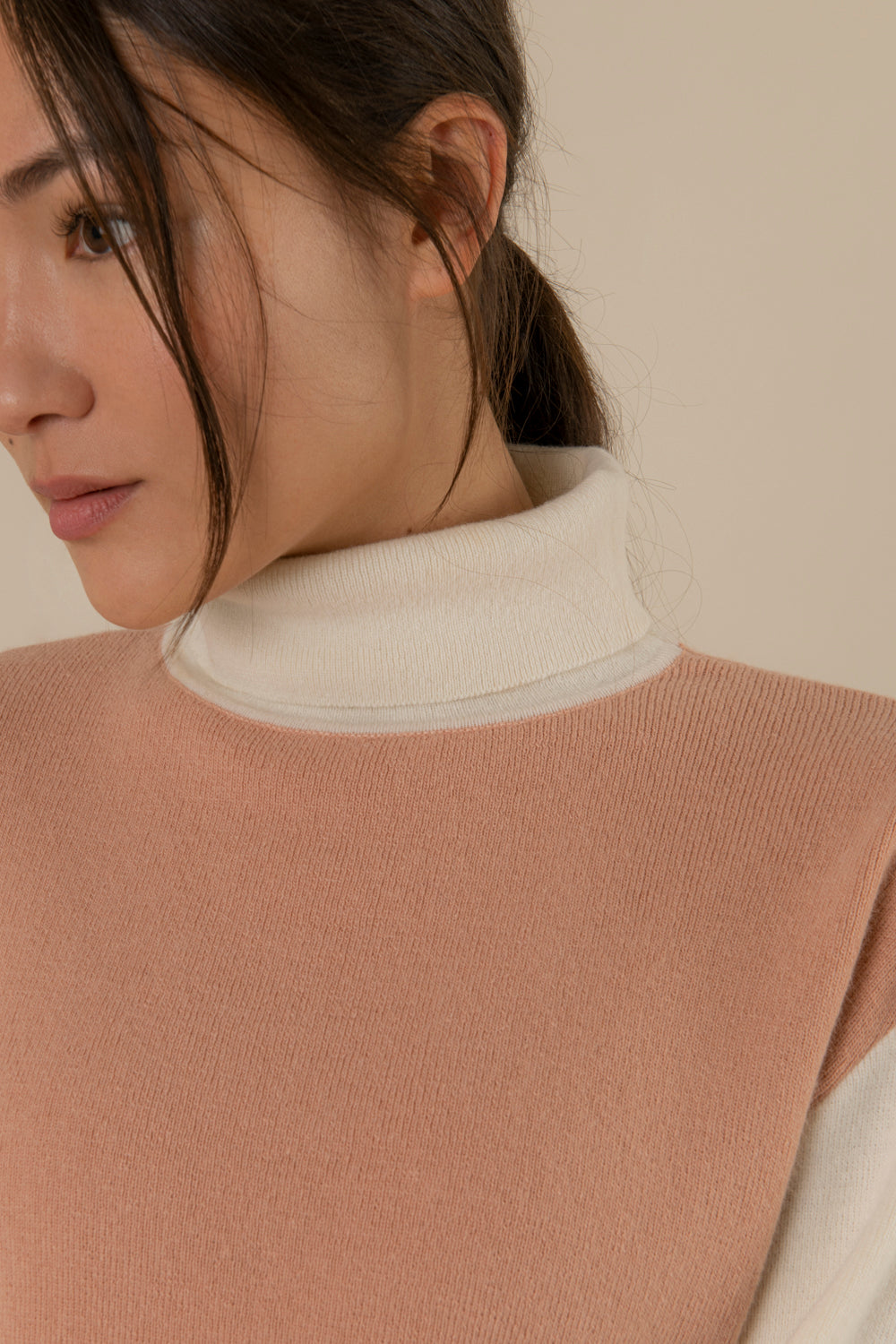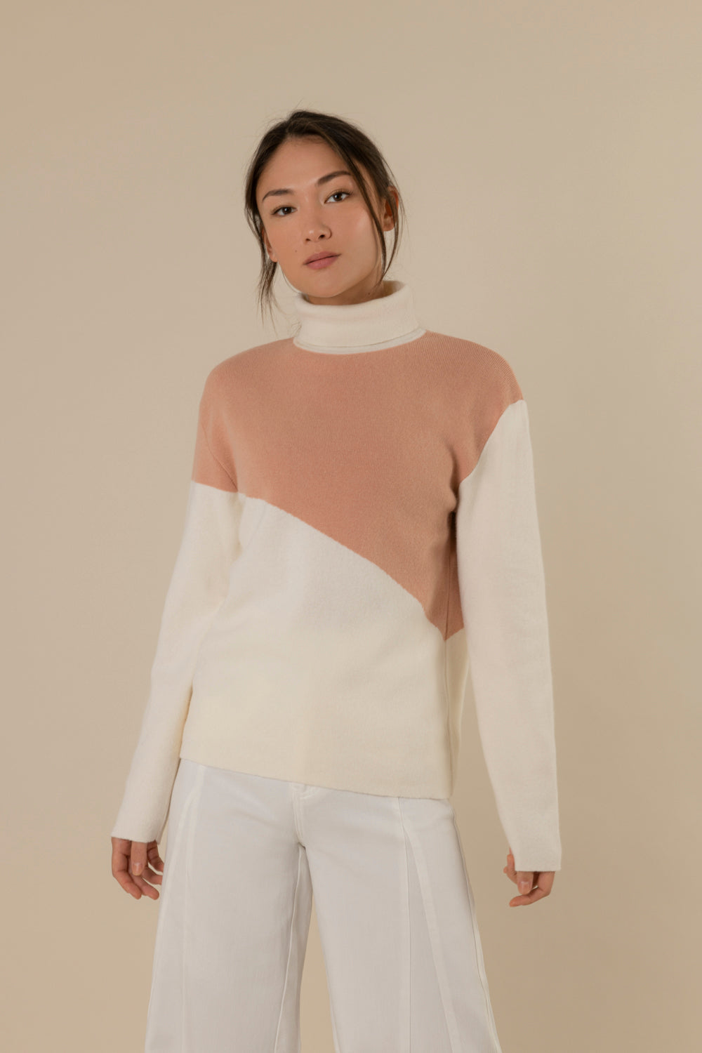 Fit and light rollneck sweater with a rusty rose and white elegant colour transition on the torso and sleeves