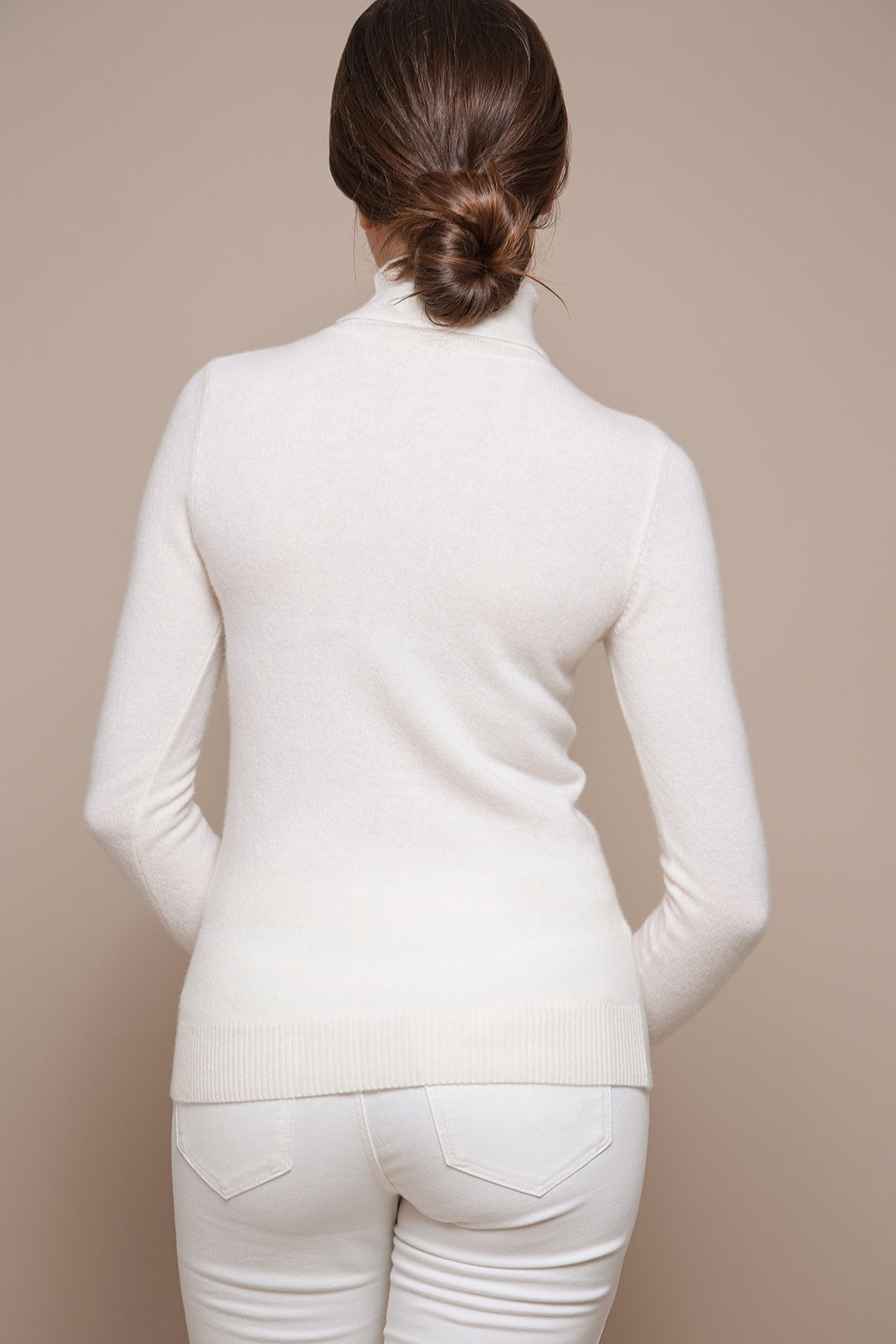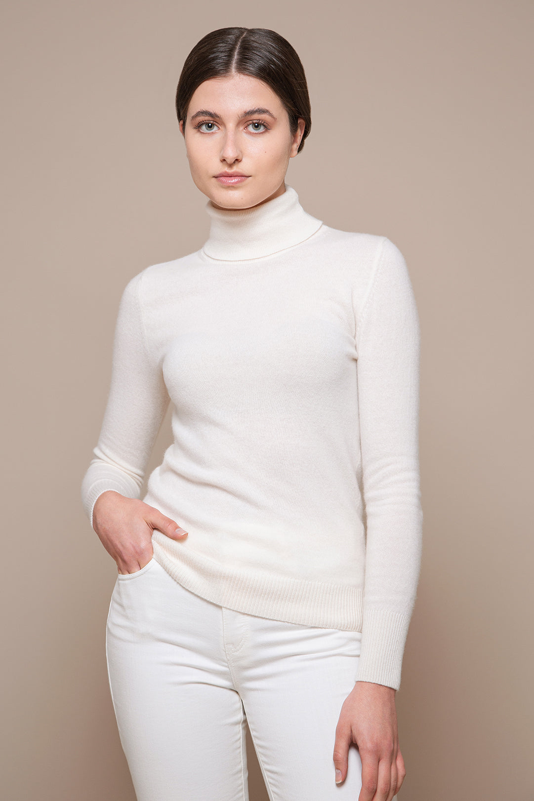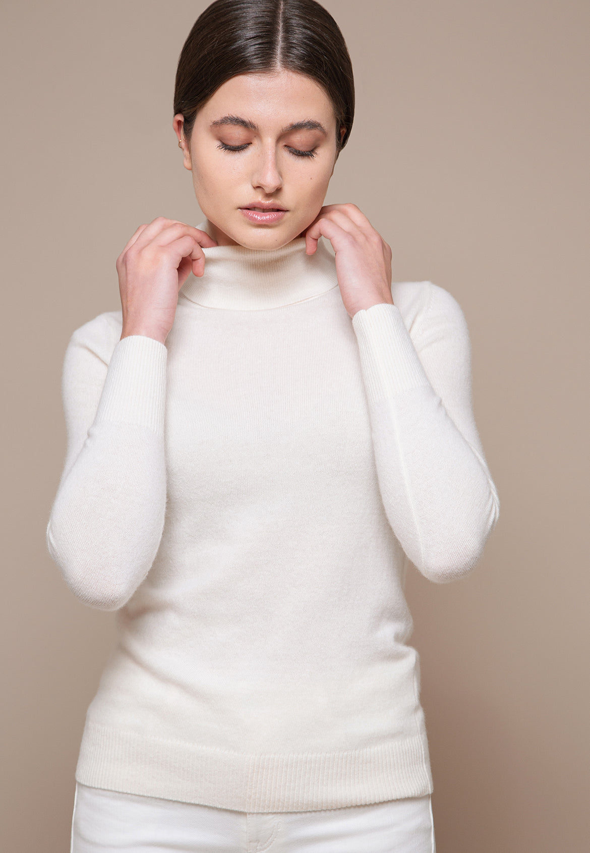 A wintertime go-to turtleneck in a warm and lightweight superfine wool and cashmere knit