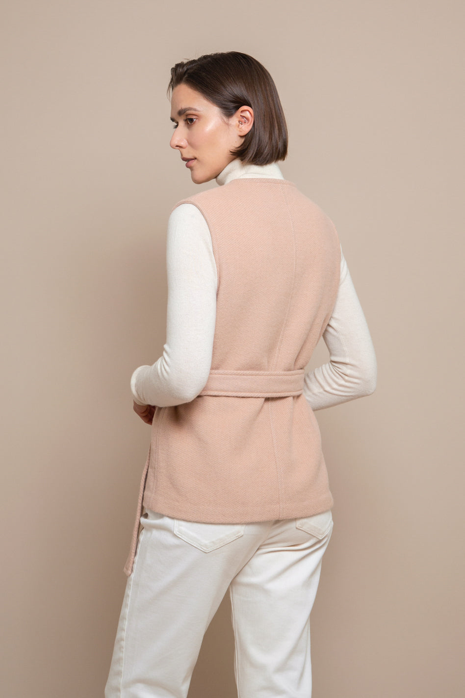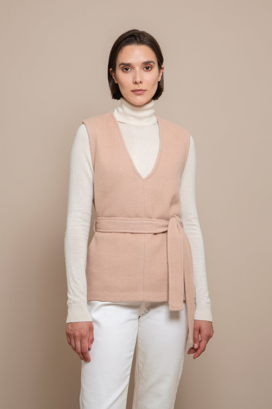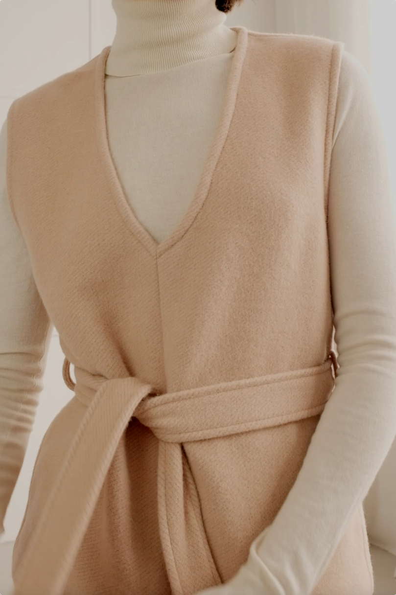 Made of a lightweight but very warm and soft fabric, the Theresa top was conceptualized to be worn with a jumper or shirt underneath in the colder days. Designed with a straight cut and a deep rounded V-neck, this is a piece that celebrates the beauty of simplicity.